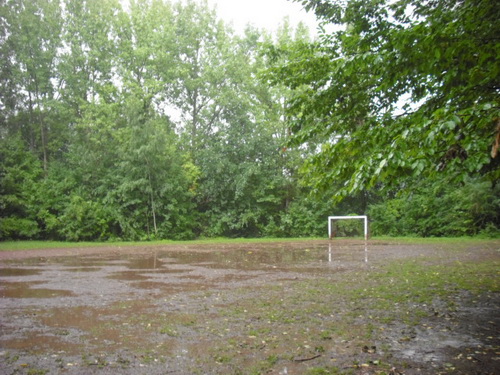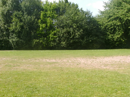 Die Wiese ist sehr uneben und es gibt auch keine richtigen Tore.