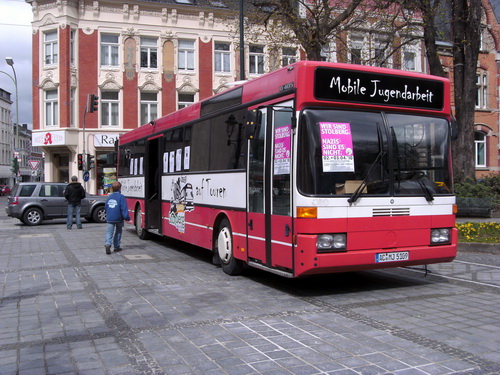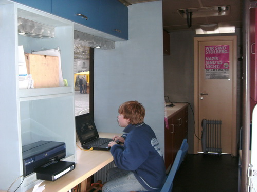 Den Jugendbus gibt es seit 2009. Er ist so etwas wie ein Jugendtreff auf Rädern. Jeden Tag steht er in einem anderen Ortsteil von Stolberg. Er wird von Sozialarbeitern betreut.