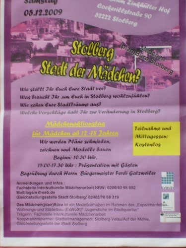 Wofür wurde das Haus gebaut? Da es in Stolberg wenige Treffpunkte für Mädchen gibt – besonders für Mädchen mit Migrationshintergrund – wurde das Haus als ein Treffpunkt allein nur für Mädchen gebaut! Aber es sind nicht nur ausländische Mädchen dabei, sondern auch deutsche Mädchen. Für alle Mädchen wurde gedacht.