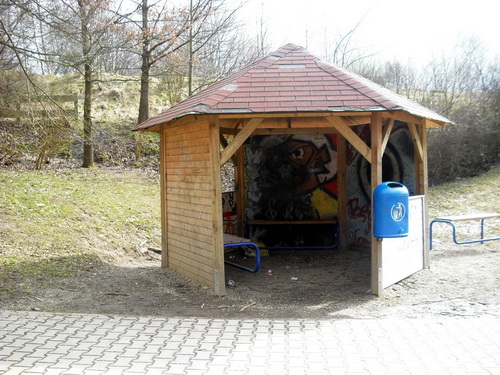 In Stolberg gibt es ein paar Hütten, die für Jugendliche gebaut wurden. Wir haben sie Unterschlüpfe genannt.